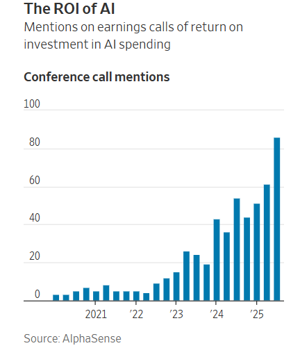 The desire to avoid hiring or filling jobs reflects a growing push among executives to see a return on their AI spending. On earnings calls, mentions of ROI and AI investments are increasing, according to an analysis by AlphaSense, reflecting heightened interest from analysts and investors that companies make good on the millions they are pouring into AI.