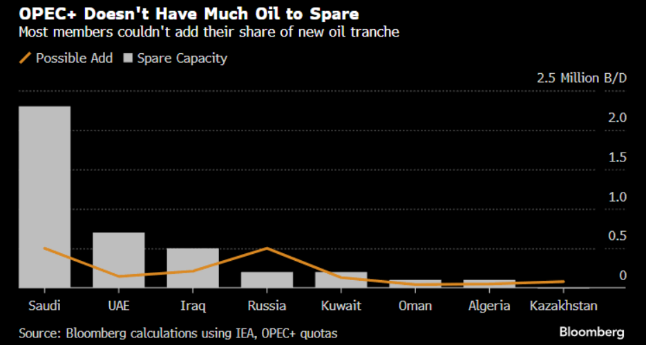 Reviving the 1.66 mbpd tranche would enable Saudis to add 730,000 barrels a day. While the others would be allowed to add about 800,000 a day, they lack the spare capacity needed to boost supplies that much.