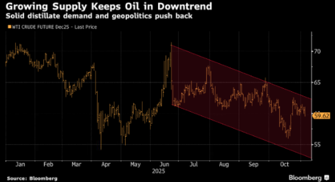 Finally, the growing level of supply will be a headwind to any rallies. While OPEC+ has stabilized output, non-OPEC barrels led by US production at a fresh record keep grinding higher. Further, Guyana is switching on new offshore projects, Brazil is pumping more from big deep-water fields, and Canada’s new pipeline is moving more oil to market together adding a steady stream of non-OPEC supply into 2026.