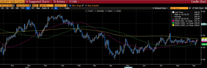JPY is currently trading at 148.06 post the recent DXY strength but the 200 DMA at 148.62 should hold for this week. Tokyo CPI data due on Friday this week should be strong and make the case for BOJ 25 bps rate hike in October. On the downside first support is at 100 DMA at 146.30.