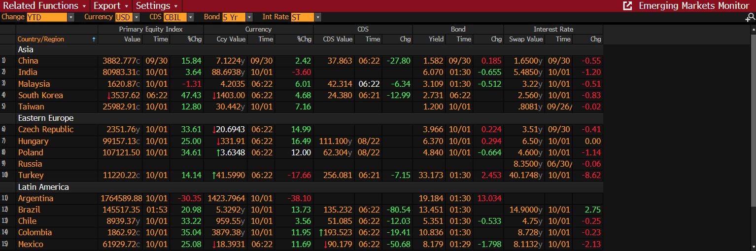 EM LCY debt returns touched a fresh YTD high of +15% (on an unhedged basis) in September after a somewhat lacklustre start in Q3.