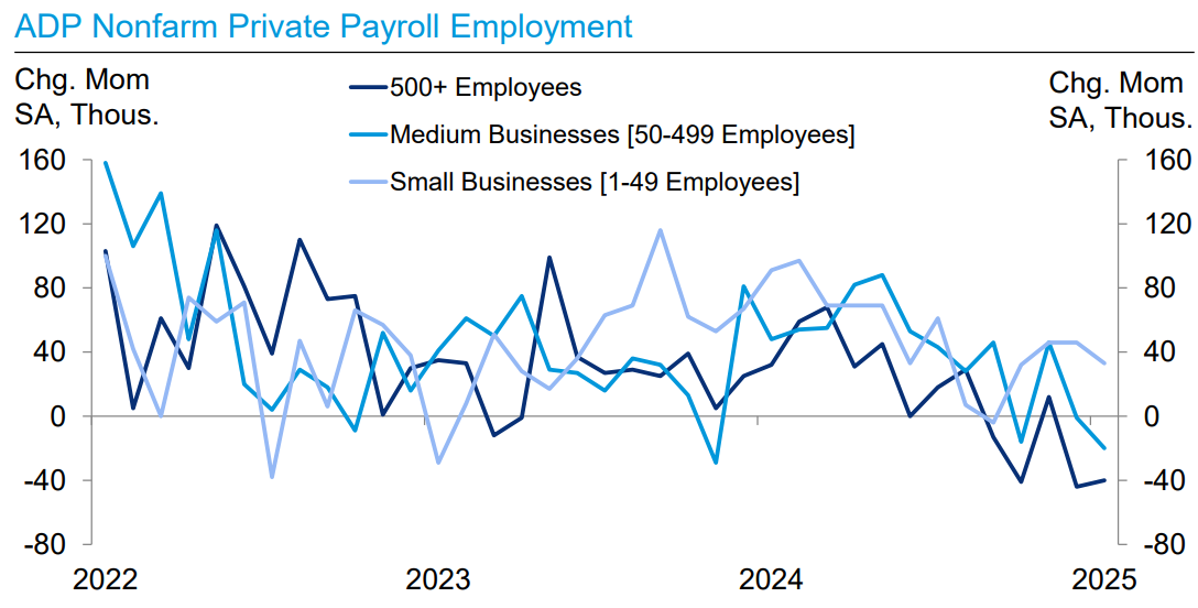 Even ADP shows labor weakness is being driven primarily by small and medium businesses, large hanging in there better.