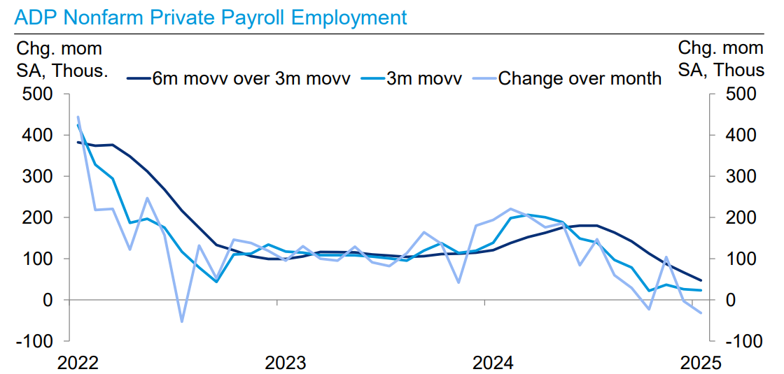 Even ADP estimated that US payrolls fell by 32k in September. ADP employment has slowed sharply recently, contracting in 3 out of last 4 months. And private payrolls have tended to be revised towards ADP in recent years.