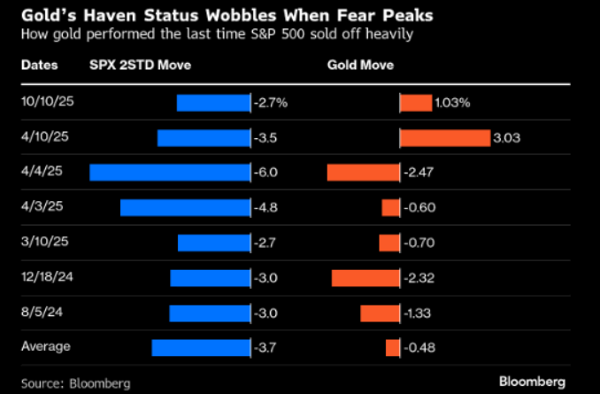 While it has ebbed and flowed in recent years, this is a reminder that gold may not serve as a perfect diversifier the next time fear takes over. Since early 2024, there have been seven instances when the S&P 500 dropped more than two standard deviations in a day and gold fell as well. After this year’s outsized gains, the metal could be vulnerable to forced selling if liquidity tightens and traders scramble to raise cash for margin calls or redemptions. We’ve seen that play out earlier this year and it could happen again.