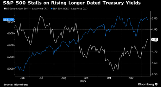 The jump in long-term Treasury yields was weighing on equities today, halting the melt-up from November lows into the all-important December FOMC meeting on Wednesday. While anxiety around the prospect of a “hawkish cut” is taking hold, once Fed Day’s events are out of the way, there are several factors that support a return of the rally.