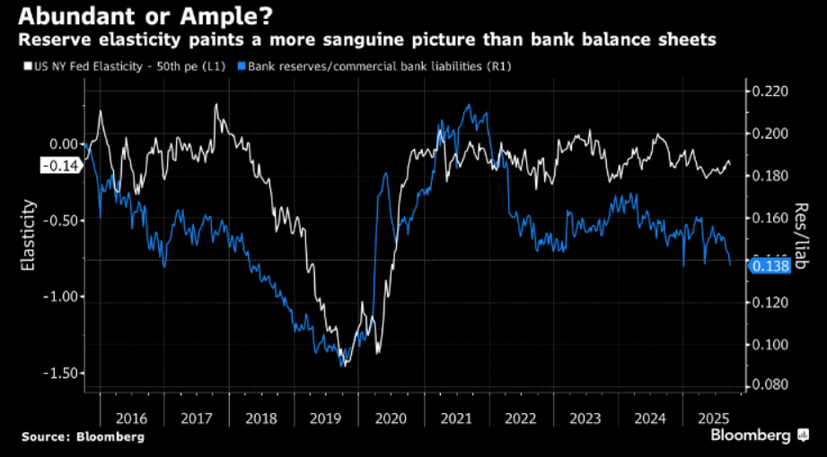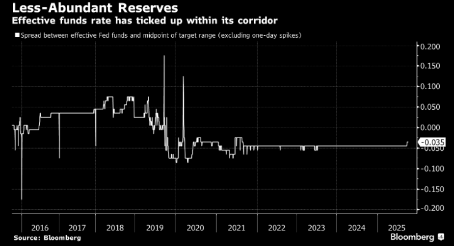 As bank reserves come down, there’s been prolonged funding pressures in US money markets suggesting the central bank may be getting closer to the point where it aims to halt the runoff.