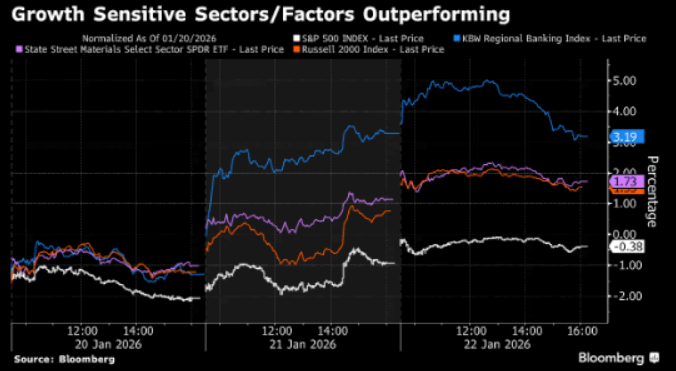 The melt-up is back with US equities trading like the Greenland tariff escalation never happened. Both the S&P 500 and VIX are near levels from a week ago, re-anchored in the previous year-to-date ranges.