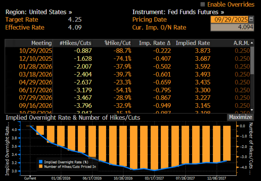 US payrolls, a speech by UK’s Reeves, and China PMIs are among the main catalysts for markets this coming week. Friday’s jobs report will shape the Fed’s rate path & give more clarity on the remaining cuts being priced for REMCY25. Currently markets are pricing in 41 bps of cuts for REMCY25. Terminal rates are currently being priced at 3.10 from the lows of 2.85 post pre-17th Sep FOMC.