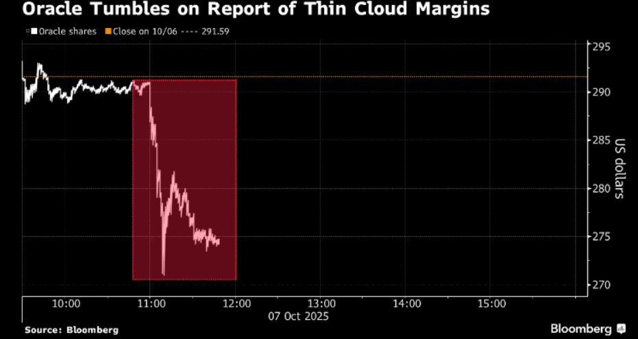 The heavy spending required to acquire chips and build out data center capacity has weighed on Oracle’s overall gross margin, which excludes operating expenses. In its most recent earnings report, Oracle’s gross margin was 67.3%, the lowest in more than a year, according to data compiled by Bloomberg.